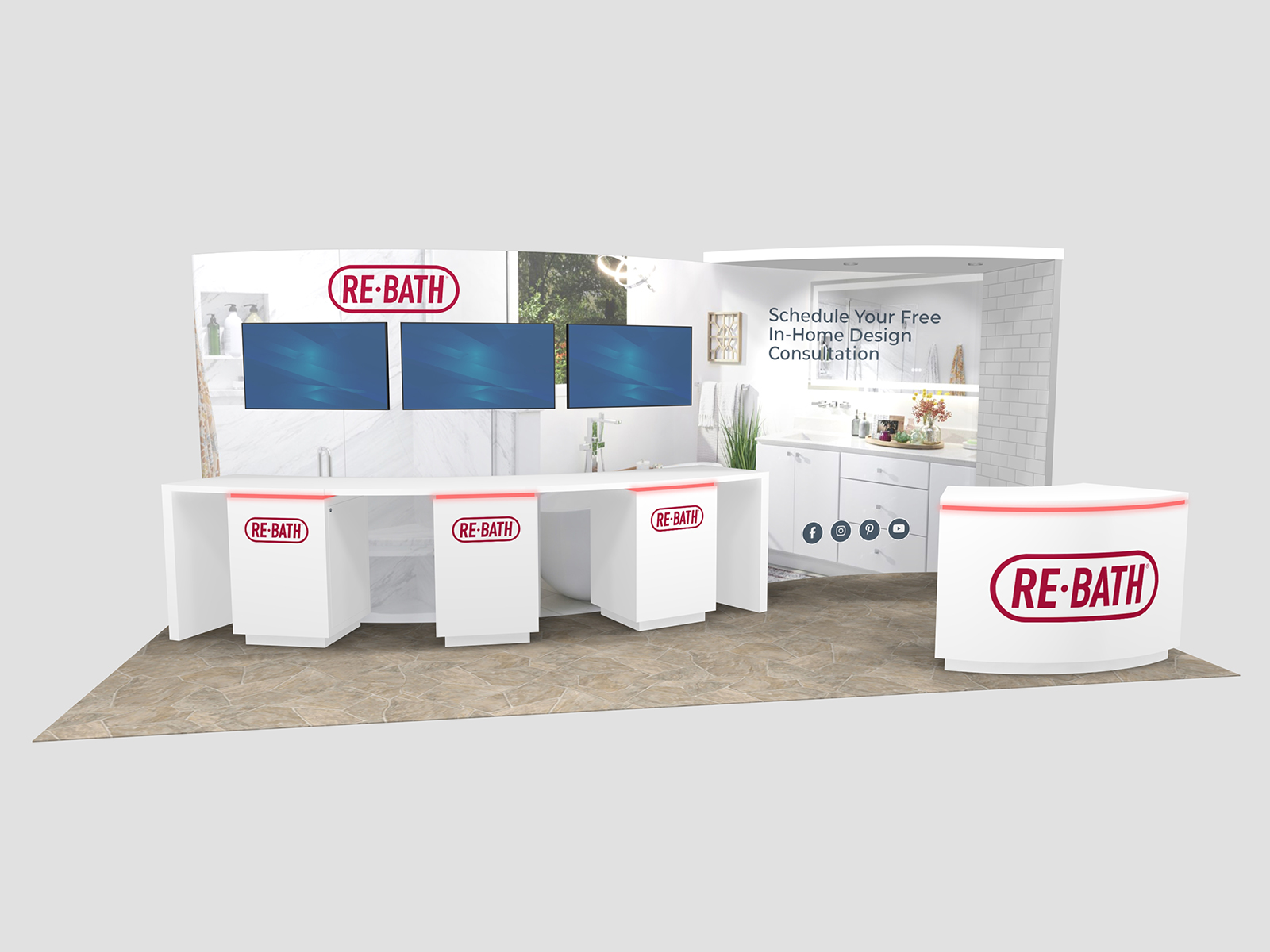 Many exhibitors blend rental components with their existing exhibit. For example, your exhibit may include the main structure, like a tower and a conference room. Renting the workstations, kiosks, or other accessories will allow you to mix and match components depending on your show requirements. In addition, it allows you to “test-drive” components to see if there’s a long-term need.