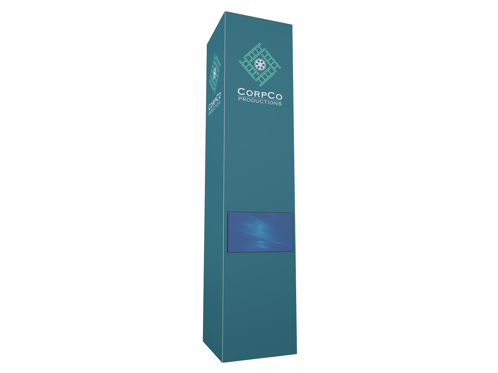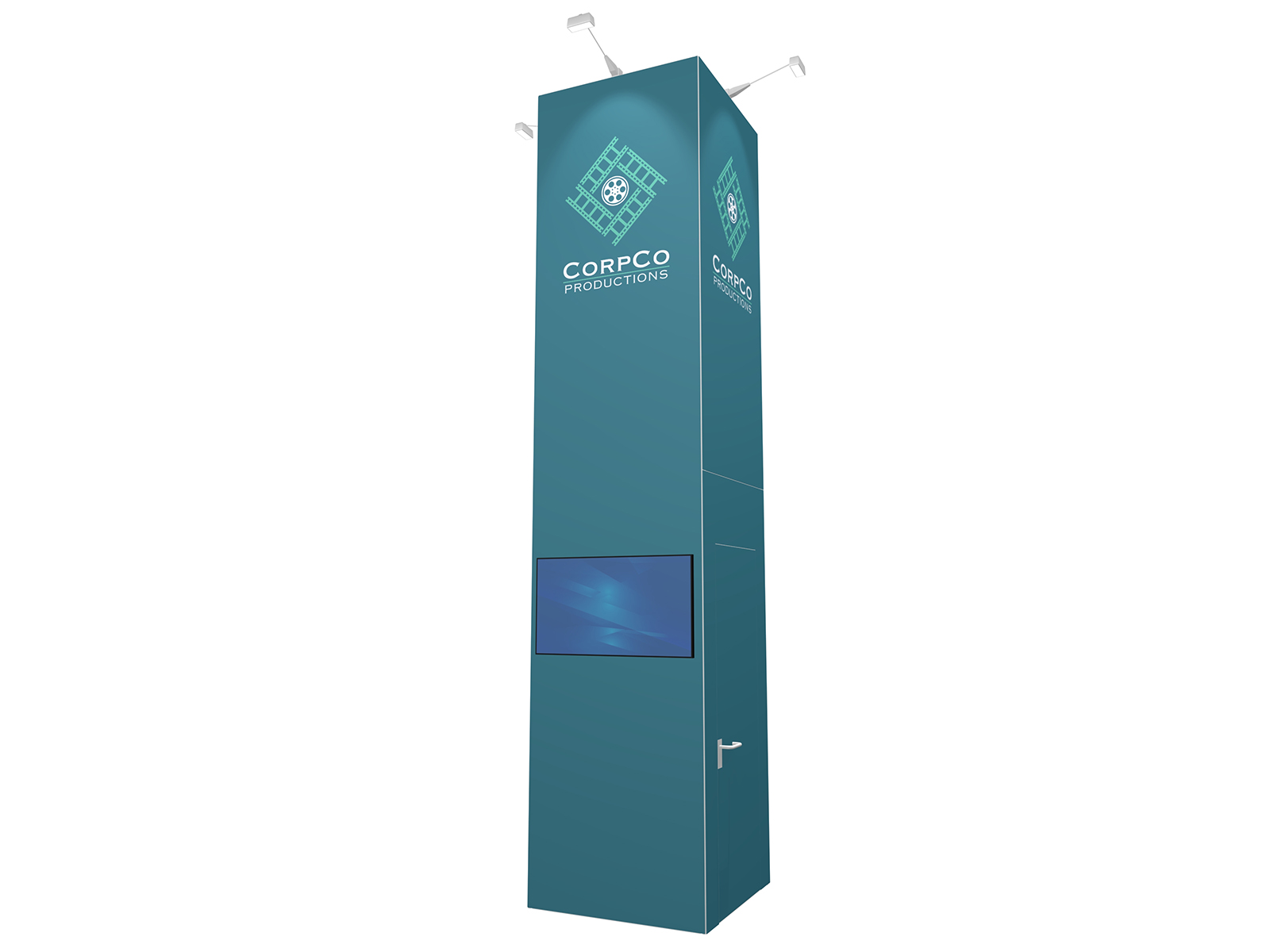 Towers are the ideal building block for creating a customized island exhibit. Start by choosing the tower size. Then add counters, workstations, lightboxes, and furniture to complete the design. For many exhibitors, flexibility is crucial. Their booth size and messaging often changes depending on the show and the audience. A tower serves as the central feature in the booth design but everything else can vary. Perfect!