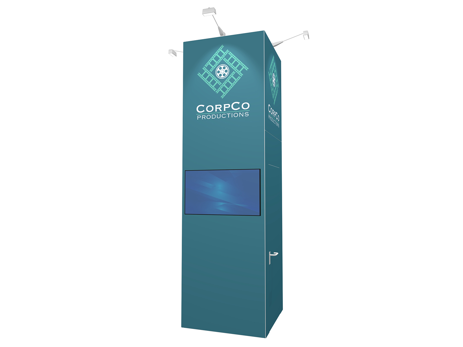 Towers are the ideal building block for creating a customized island exhibit. Start by choosing the tower size. Then add counters, workstations, lightboxes, and furniture to complete the design. For many exhibitors, flexibility is crucial. Their booth size and messaging often changes depending on the show and the audience. A tower serves as the central feature in the booth design but everything else can vary. Perfect!